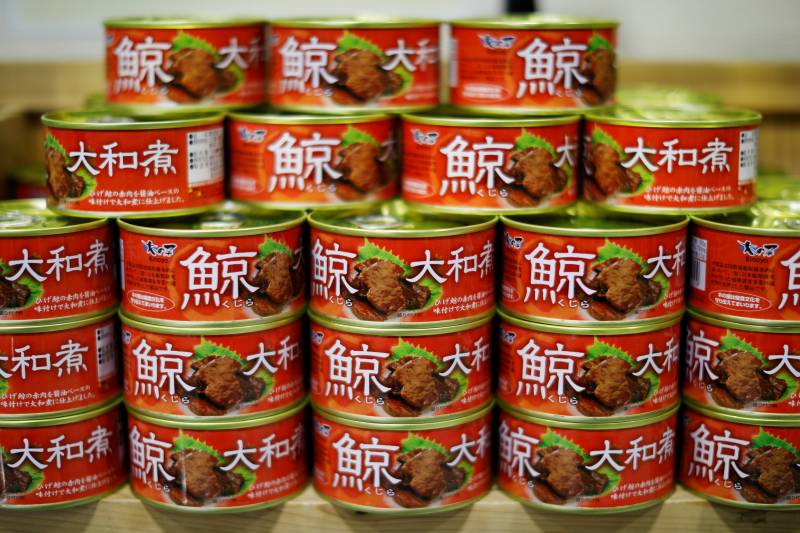เนื้อวาฬบรรจุกระป๋อง วางขายที่ร้านสะดวกซื้อแห่งหนึ่งในกรุงโตเกียว