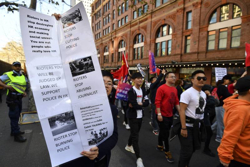 สำนักข่าวต่างประเทศรายงานจากเมืองซิดนีย์ ประเทศออสเตรเลีย เมื่อวันที่ 17 ส.ค. ว่า กลุ่มชาวจีนที่อาศัยอยู่ในออสเตรเลีย นัดชุมนุมกันใน 2 เมืองใหญ่ เมื่อวันเสาร์ โดยฝ่ายที่สนับสนุนการประท้วงเรียกร้องประชาธิปไตยของนักศึกษาในฮ่องกง รวมตัวชุมนุมส่งแรงใจ ในย่านใจกลางเมืองเมลเบิร์น เมืองใหญ่อันดับ 2 ทางภาคใต้ฝั่งตะวันออก ส่วนกลุ่มที่สนับสนุนรัฐบาลจีนปักกิ่ง และต่อต้านการประท้วงในฮ่องกง ชุมนุมกันในย่านใจกลางเมืองซิดนีย์ เมืองใหญ่อันดับ 1 ทางภาคตะวันออกเฉียงใต้