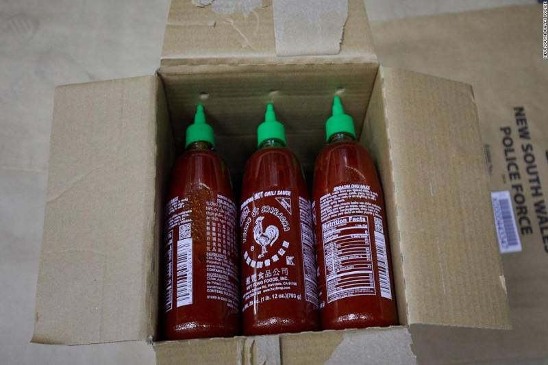 สำนักข่าวรอยเตอร์รายงานจากเมืองซิดนีย์ ประเทศออสเตรเลีย เมื่อวันที่ 31 ต.ค. ว่า การตรวจสอบตู้ขนส่งสินค้าทางอากาศ ที่เดินทางจากสหรัฐไปถึงคลังสินค้าเมืองซิดนีย์ ทางภาคตะวันออกเฉียงใต้ของออสเตรเลีย เมื่อวันที่ 5 ต.ค. เจ้าหน้าที่พบขวดซอสพริกศรีราชาจำนวน 768 ขวด บรรจุสารที่ผลการตรวจสอบพบว่าเป็นยาไอซ์ จากการแถลงของสำนักงานตำรวจรัฐนิวเซาท์เวลส์ เมื่อวันพฤหัสบดี