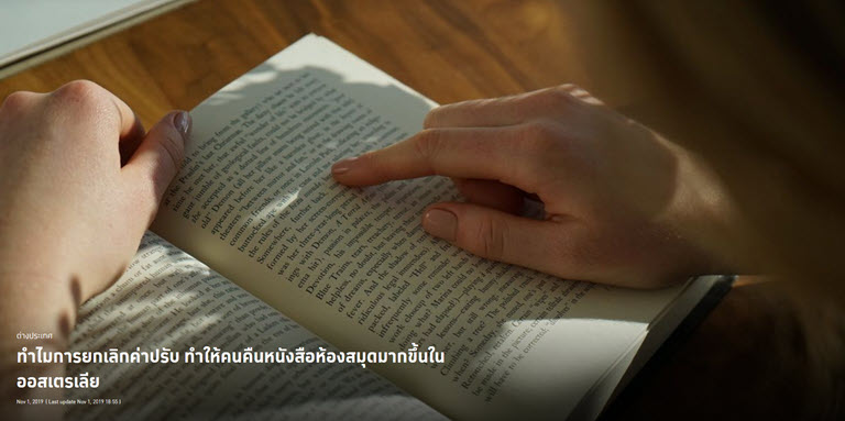 ออสเตรเลีย ประกาศยกเลิกค่าปรับผู้ที่คืนหนังสือจากบรรดาห้องสมุดในเขตเมืองหลวงช้ากว่ากำหนด หลังพบว่าหลายๆ เมืองที่ยกเลิกค่าปรับก่อนหน้านี้มีคนมาคืนมากขึ้น