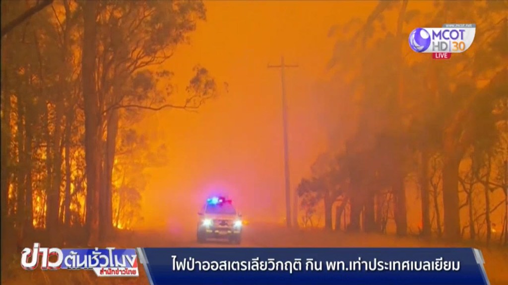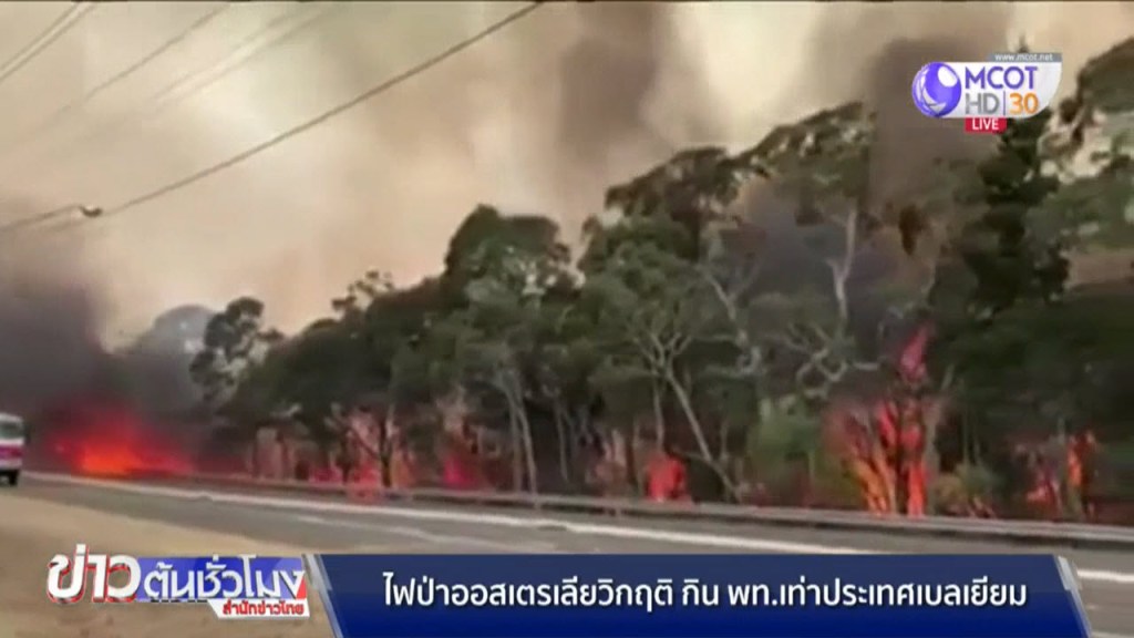 อุณหภูมิในรัฐนิวเซาท์เวลส์ ซึ่งเป็นรัฐที่มีประชากรหนาแน่นที่สุดของออสเตรเลีย จะทำลายสถิติอากาศร้อนที่ 47 องศาเซลเซียส ซึ่งจะยิ่งโหมให้ไฟป่าที่มีอยู่กว่า 100 จุด ลุกลามแผ่ขยายวงกว้างมากขึ้น หลังจากเผาผลาญไป 18 ล้านไร่ หรือขนาดเท่ากับประเทศเบลเยียมทั้งประเทศ บ้านเรือนถูกเผาไปกว่า 800 หลัง มีผู้เสียชีวิตแล้วอย่างน้อย 10 คน ในจำนวนนี้เป็นเจ้าหน้าที่ดับเพลิงอาสาสมัคร 2 คน