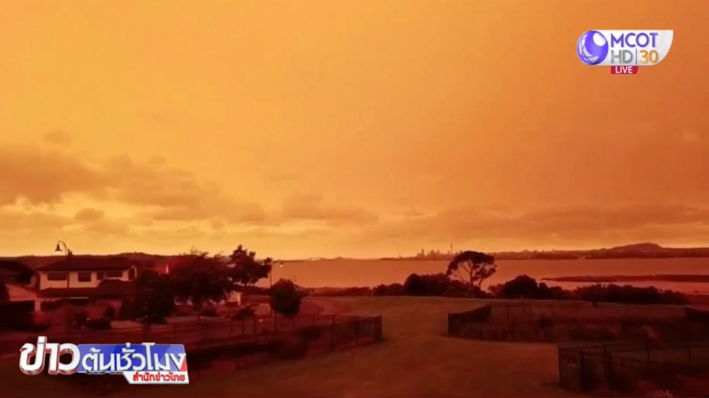 นิวซีแลนด์ 5 ม.ค.-ท้องฟ้าเมืองออคแลนด์ นิวซีแลนด์ วันนี้กลายเป็นสีส้ม ผลกระทบจากหมอกควันไฟป่าในออสเตรเลียพัดเข้าปกคลุม