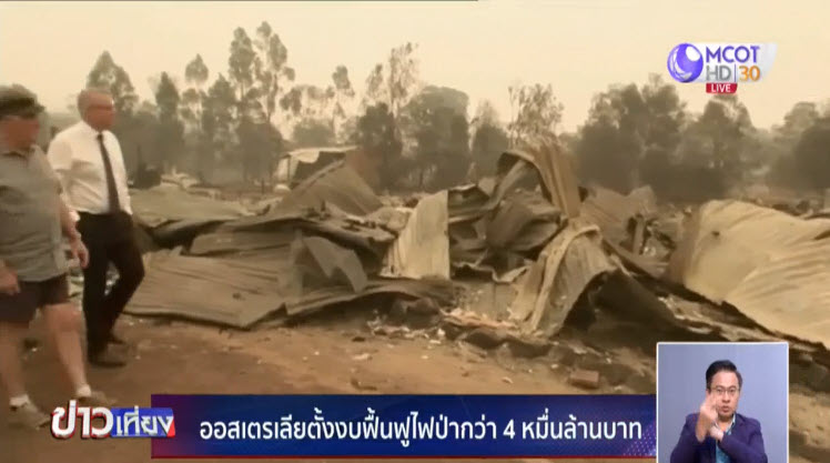 ออสเตรเลีย 6 ม.ค.- ผู้นำออสเตรเลียประกาศตั้งงบ 2,000 ล้านดอลลาร์ออสเตรเลีย เพื่อใช้ฟื้นฟูพื้นที่ที่เกิดไฟป่าในช่วง 2 ปีข้างหน้า ขณะที่สถานการณ์ไฟป่ายังคงวิกฤต