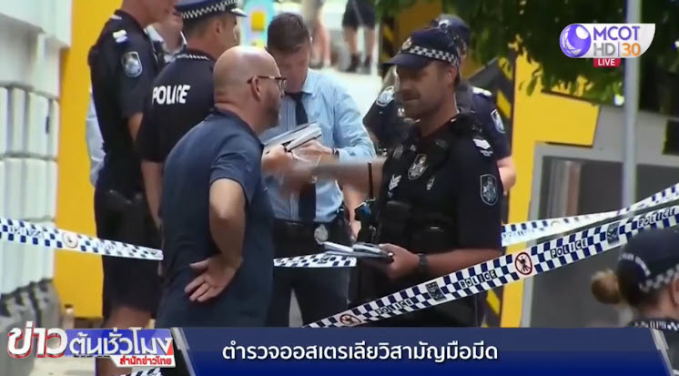 ออสเตรเลีย 23 ก.พ.- ตำรวจออสเตรเลียวิสามัญมือมีด หลังได้รับแจ้งว่าชายดังกล่าวสะกดรอยตามชายหญิงคู่หนึ่ง และใช้อาวุธมีดจ้วงแทงชายดังกล่าวบาดเจ็บ