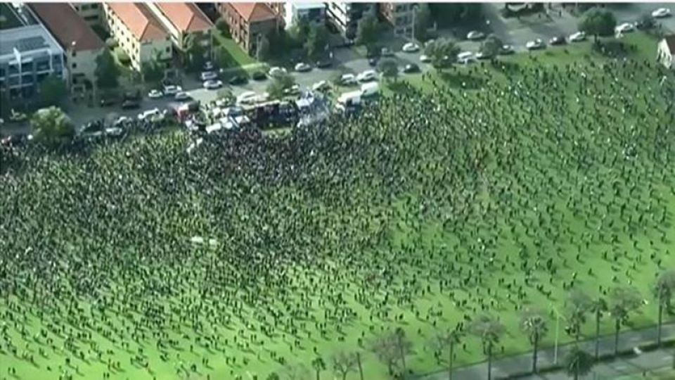 ซิดนีย์ 13 มิ.ย.- คนทั่วออสเตรเลียเข้าร่วมการชุมนุมเรียกร้องสิทธิคนผิวดำหรือ Black Lives Matter ในวันนี้ โดยสวมหน้ากากอนามัยและรักษาระยะห่างทางสังคม แม้ทางการท้องถิ่นขอให้ยกเลิกเพราะเกรงโรคติดเชื้อไวรัสโคโรนา 2019 หรือโควิด-19 ระบาดระลอกใหม่