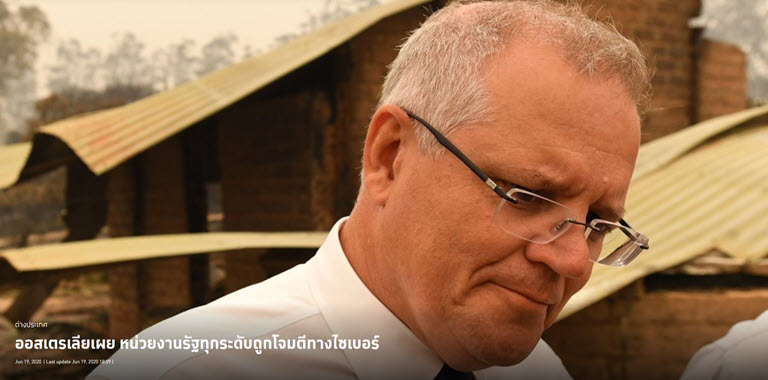 สก็อตต์ มอร์ริสัน นายกรัฐมนตรีออสเตรเลียเปิดเผยว่า รัฐบาลและสถาบันต่างๆ ของออสเตรเลียถูกโจมตีทางไซเบอร์ที่ซับซ้อน เขาปฏิเสธที่จะเปิดเผยรายชื่อหน่วยงานที่ถูกโจมตี แต่ระบุว่าการโจมตีครอบคลุมทุกระดับของหน่วยงานรัฐบาล หน่วยงานทางการเมือง อุตสาหกรรม หน่วยงานด้านการศึกษา ระบบสาธารณสุข บริการที่จำเป็นอย่าง และธุรกิจต่างๆ ด้วย แต่ยังไม่มีข้อมูลส่วนตัวรั่วไหลครั้งใหญแต่อย่างใด
