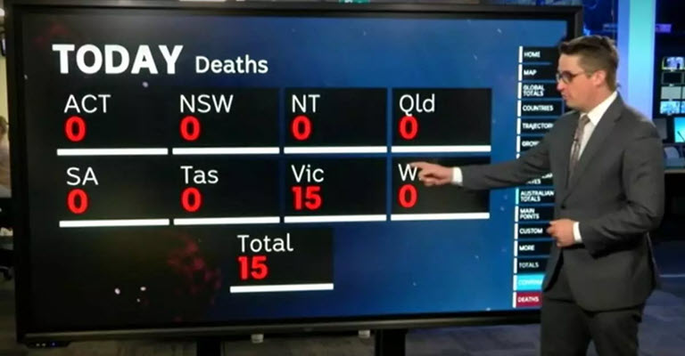 รัฐวิกตอเรีย รัฐที่มีประชากรมากเป็นอันดับ 2 ของออสเตรเลียรายงานว่ามีผู้ป่วย และผู้เสียชีวิตจากโรคโควิด-19 สูงทำสถิติ และกำลังเตรียมจะปิดกิจการส่วนใหญ่ เพื่อควบคุมการระบาดระลอกสอง ที่กำลังจะลุกลามไปทั่วประเทศ โดยในวันนี้รัฐวิกตอเรียรายงานว่า มีผู้ป่วยรายใหม่ถึง 725 คน และมีผู้เสียชีวิต 15 คน แม้จะใช้มาตรการปิดเมืองกับนครเมลเบิร์น เมืองหลวงของรัฐมา 4 สัปดาห์แล้วก็ตาม