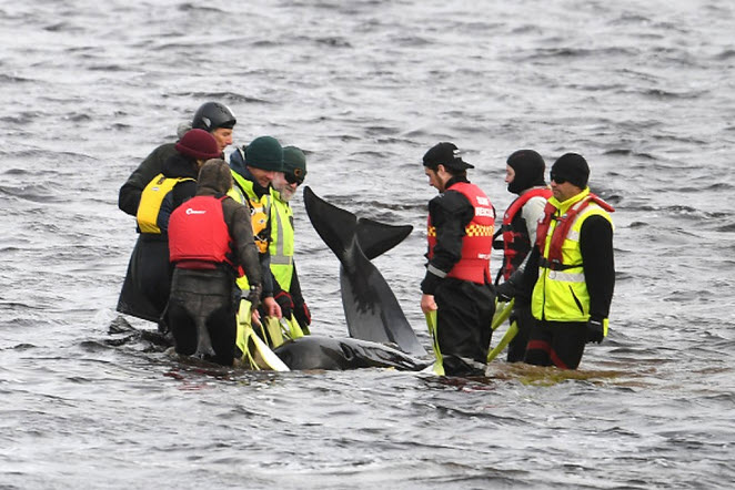 “This is definitely the biggest (pilot whale stranding) in Tasmania and we believe it’s the biggest recorded in terms of numbers in Australia,” Kris Carlyon, a wildlife biologist of the Tasmanian government’s Marine Conservation Program, told ABC.