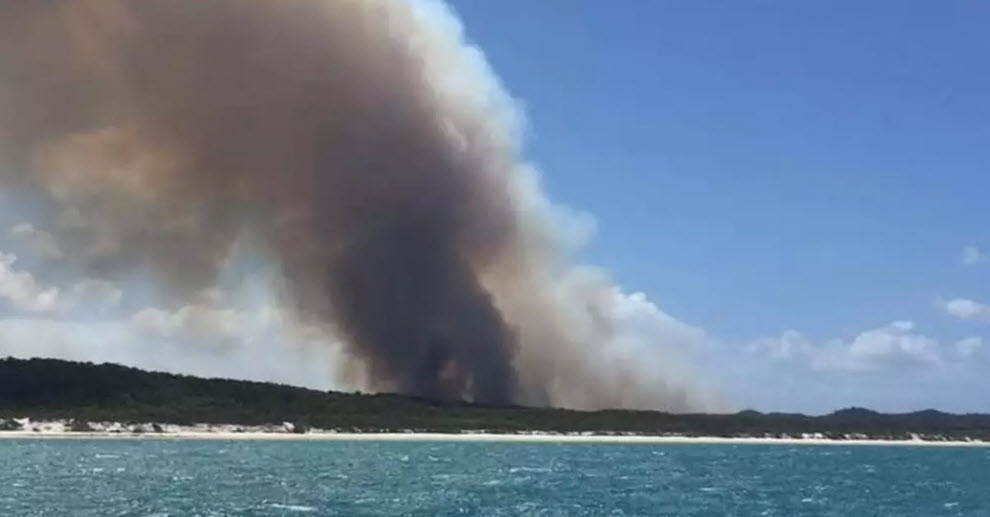 ไฟป่าเผาพื้นที่เกาะจนไหม้ดำไปแล้วครึ่งเกาะ สำนักงานดับเพลิงและบริการฉุกเฉินของรัฐควีนส์แลนด์แจ้งผ่านสื่อสังคมออนไลน์ให้ชาวเมืองแฮปปีวัลลีย์บนเกาะนี้อพยพโดยทันที เพราะหลังจากนี้จะอันตรายเกินกว่าจะขับรถออกมาได้ เกาะนี้ตั้งอยู่ริมฝั่งตะวันออกของออสเตรเลีย อยู่ทางเหนือของเมืองบริสเบน เมืองเอกของรัฐควีนส์แลนด์ มีพื้นที่ประมาณ 1,655 ตารางกิโลเมตร มีประชากรเบาบาง เป็นส่วนหนึ่งของเกรตแบร์ริเออร์รีฟ แนวหินปะการังยาวที่สุดในโลก และมีความเป็นเอกลักษณ์เพราะเป็นป่าฝนเขตร้อนบนเนินทราย อีกทั้งยังมีทะเลในจำนวนมาก ได้รับการขึ้นทะเบียนเป็นมรดกโลกในปี 2535