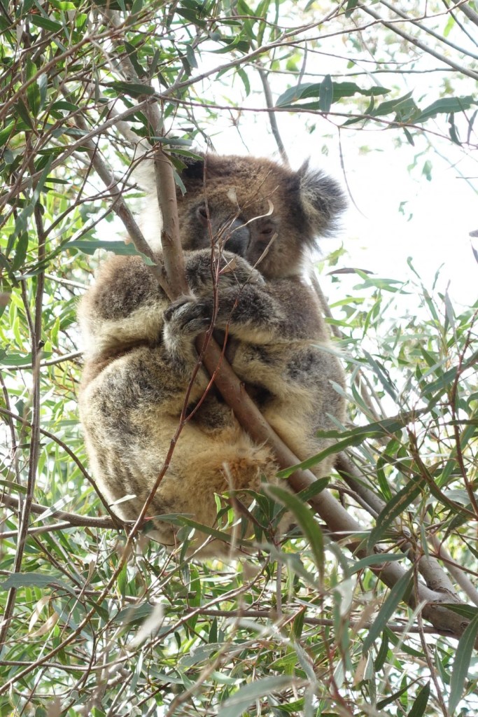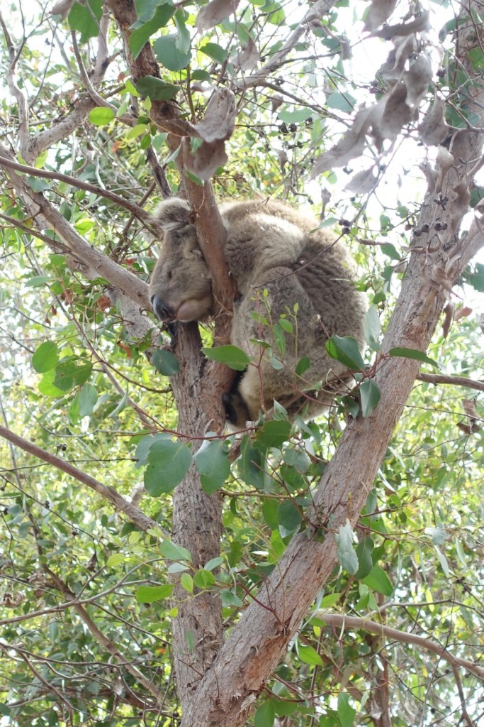 Koalas in the Hanson Bay Wildlife Sanctuary fared better. Just over a year later, Jim Geddes points out a brown-grey, furry ball wedged in the fork of a eucalyptus tree in the car park of the wildlife sanctuary, located at the western and most severely damaged end of the island.