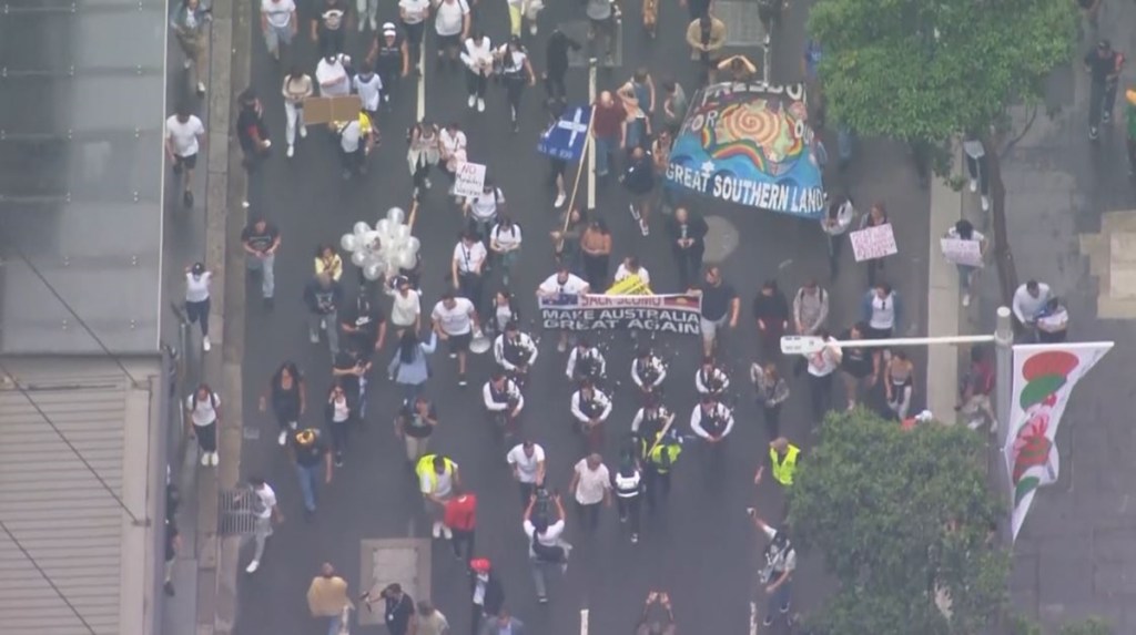 ส่วนในนครซิดนีย์ กลุ่มผู้ต่อต้านวัคซีนก็พากันรวมตัวประท้วงที่สวนสาธารณะไฮด์ปาร์ก ก่อนเคลื่อนขบวนไปตามถนนสายต่างๆ ในนครซิดนีย์เช่นกัน.