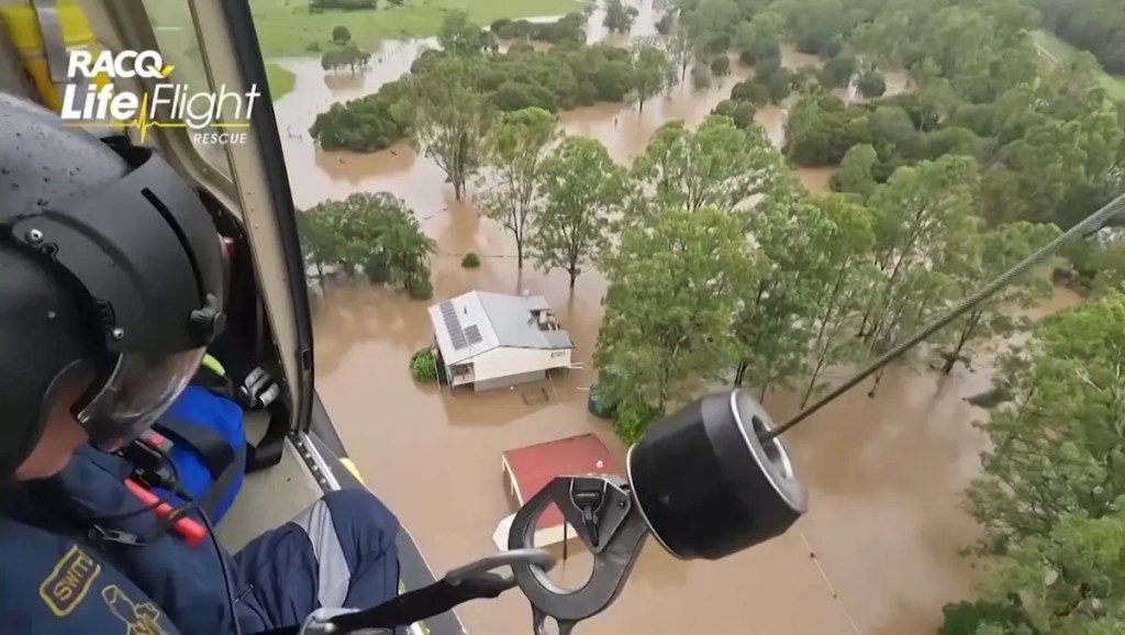 ฝนที่ตกหนักต่อเนื่องหลายวัน จนเกิดน้ำท่วมเป็นบริเวณกว้างทั่วรัฐควีนส์แลนด์ของออสเตรเลีย ทำให้หลายครอบครัวต้องติดค้างอยู่ในบ้าน รวมทั้งครอบครัวหนึ่งในเมืองฟรายเซอร์ โคสต์ ทางเหนือของเมืองบริสเบน เมืองเอกของรัฐควีนส์แลนด์ ต้องอพยพหนีน้ำท่วมทางเฮลิคอปเตอร์ เพราะถนนถูกตัดขาด
