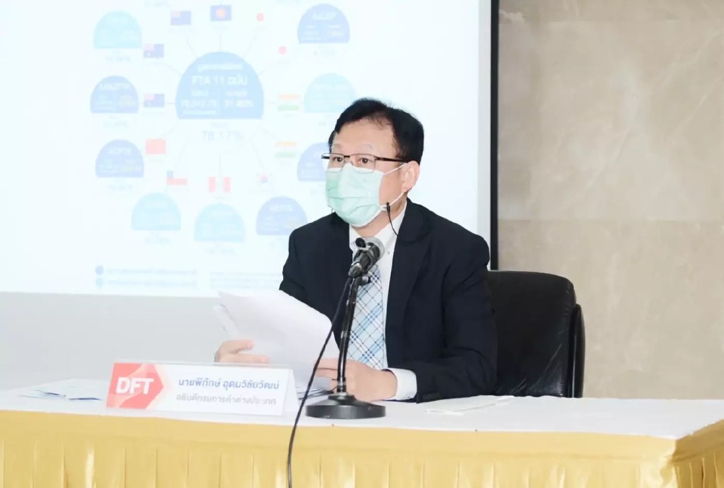 นายพิทักษ์ อุดมวิชัยวัฒน์ อธิบดีกรมการค้าต่างประเทศ เปิดเผยการใช้สิทธิประโยชน์สำหรับการส่งออกภายใต้ความตกลงการค้าเสรีหรือเอฟทีเอ (FTA) ในปี 2564 ตั้งแต่เดือนม.ค.– ธ.ค. มีมูลค่ารวม 76,312.79 ล้านดอลลาร์ เพิ่มขึ้น 31.40 %เมื่อเทียบกับช่วงเวลาเดียวกันของปีก่อน และมีสัดส่วนการใช้สิทธิฯ สูงถึง 78.17 % โดยเป็นการใช้สิทธิฯเพิ่มขึ้นสูงในทุกตลาด ประกอบด้วยอาเซียน ขยายตัว 35.91 % ออสเตรเลีย ขยายตัว 21.28 3 % ชิลี ขยายตัว 72.66 % จีน ขยายตัว 33.61 % อินเดีย ขยายตัว 48.17 % ญี่ปุ่น ขยายตัว 8.46 % เกาหลีใต้ ขยายตัว 38.30 % นิวซีแลนด์ ขยายตัว 49.26 % และเปรู ขยายตัว 143.17 %