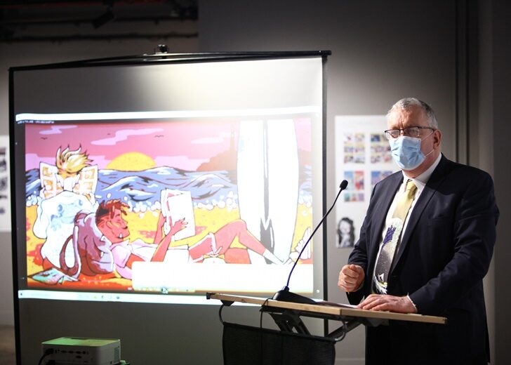 นิทรรศการ, นิโคลัส เวอสแตปเพ่น อาจารย์จากจุฬาลงกรณ์มหาวิทยาลัย และผู้เขียนหนังสือเรื่อง The Art of Thai Comics และนักเขียนการ์ตูนชาวไทย ธนิสร์ วีระศักดิ์วงศ์ หรือที่รู้จักกันในชื่อ สะอาด