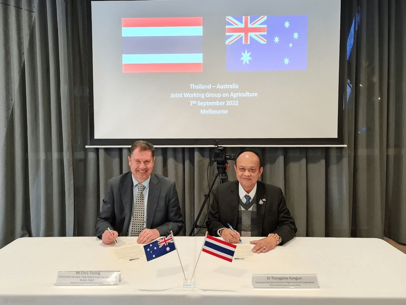 อนึ่ง ออสเตรเลียเป็นตลาดส่งออกสินค้าเกษตร อันดับที่ 34 ของไทย มูลค่าการค้าสินค้าเกษตร ไทย-ออสเตรเลีย ปี 2564 รวม 65,895 ล้านบาท โดยไทยส่งออกสินค้าเกษตรไปออสเตรเลีย 28,588 ล้านบาท และไทยนำเข้าสินค้าเกษตรจากออสเตรเลีย 37,306 ล้านบาท สินค้าเกษตรที่ไทยส่งออกไปออสเตรเลียที่สำคัญ ได้แก่ ผลิตภัณฑ์ปลาทูน่ากระป๋อง ข้าวสาร อาหารสัตว์ ผักและผลไม้ ของปรุงแต่งจากผลไม้ และสินค้าเกษตรที่ไทยนำเข้าจากออสเตรเลียที่สำคัญ ได้แก่ ข้าวสาลี ข้าวบาร์เลย์ นมและผลิตภัณฑ์จากนม