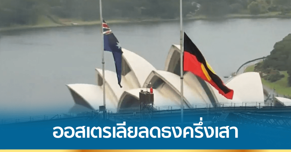 อสเตรเลีย 9 ก.ย. – สะพานซิดนีย์ฮาร์เบอร์และทำเนียบรัฐบาลในกรุงแคนเบอร์รา ลดธงครึ่งเสา ไว้อาลัยสมเด็จพระราชินีนาถเอลิซาเบธที่ 2 ของอังกฤษ สวรรคต