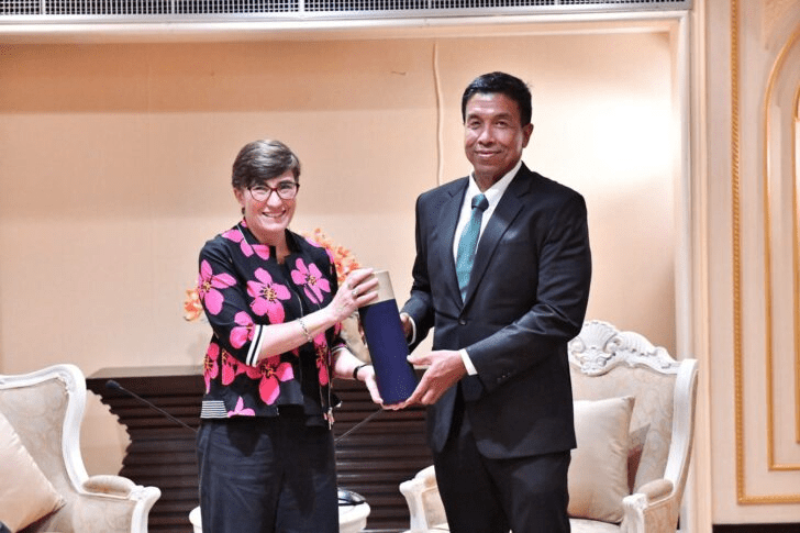 ในการเข้าเยี่ยมคารวะวันนี้ มีนางสาวจูเลีย ฟีนีย์ (Miss Julia Feeney) รองหัวหน้าคณะผู้แทนสถานเอกอัครราชทูตเครือรัฐออสเตรเลียประจำประเทศไทย นางสาวเกมมา เอดการ์ (Miss Gemma Edgar) ที่ปรึกษาด้านการพัฒนา สถานเอกอัครราชทูตเครือรัฐออสเตรเลีย และเจ้าหน้าที่ที่เกี่ยวข้องเข้าร่วม