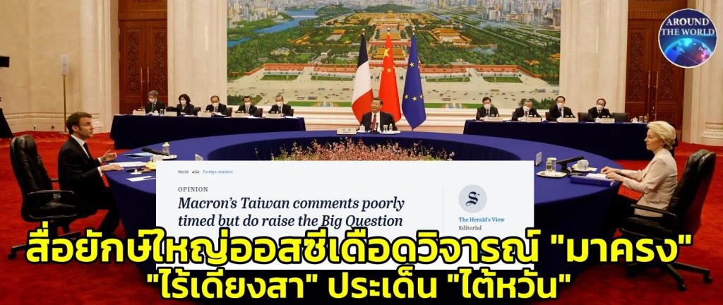 หนังสือพิมพ์ออสเตรเลียเปิดประเด็นว่า ไม่ว่าอย่างไร ประธานาธิบดีมาครงได้ทำให้เกิดคำถามใหญ่ที่ยังไม่มีใครเคยตั้งมาก่อน “จะทำอย่างไรหากจีนเกิดยกทัพบุกไต้หวัน?”